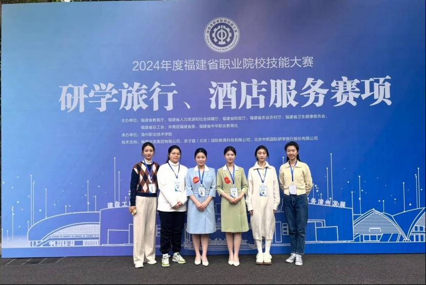 近日,由福建省教育厅、福建省人力资源和社会保障厅、福建省财政厅等八部门主办,2024年福建省职业院校技能大赛高职组研学旅行赛项在漳州职业技术学院举办,全省21所高职院校派队参赛。大赢家体育app下载导游专业21导游1班陈晶晶、林佳雪,20导游五年专江文婷、翁怡玥4位同学组队参赛,在指导团队刘佳玲和邓婕两位教师的悉心指导下,荣获一等奖第二名的好成绩。