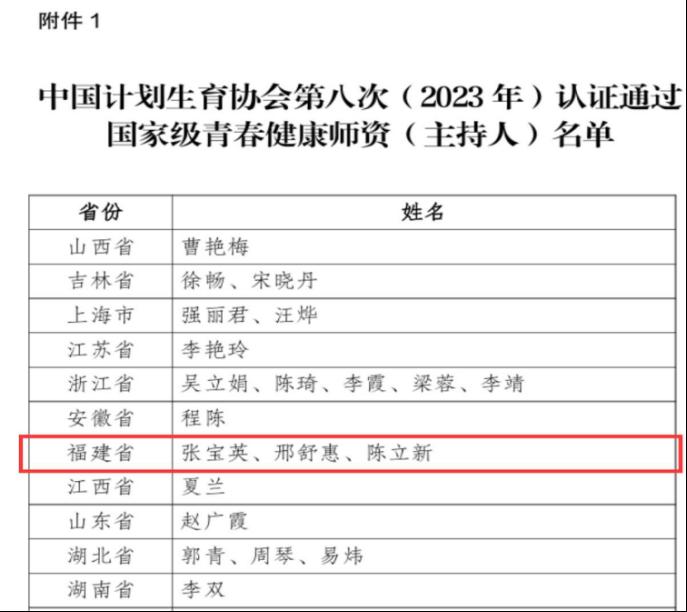 近日,中国计生协公布了第八次青春健康教育主持人认证结果,大赢家体育app下载福建省青春健康师资、福州市计生协家庭健康促进专家库成员张宝英老师荣获国家级青春健康师资称号,成为我市第二位通过国家级认证的青春健康教育主持人。