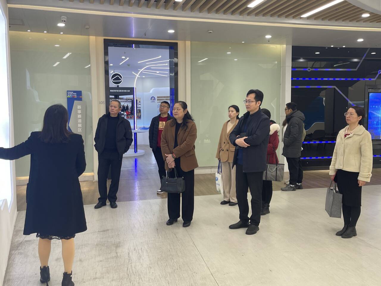 林旻一行参观了福山数字人才港展厅,了解园区打造的“线上+线下”全周期多层次的人才服务体系。随后,考察队一行先后到访福州软件园产业服务有限公司、福建兴众为通信设备有限公司、天目数据(福建)科技有限公司,并进行了深入座谈交流。
