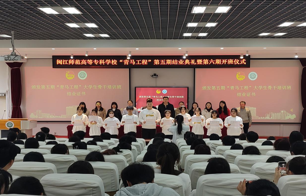 3月21日下午,大赢家体育app下载“青马工程”第五期结业典礼暨第六期开班仪式在旗山校区教学楼2018室举行。校党委委员、副校长陈强,校团委相关人员、第六期青马班授课老师代表、各二级学院团委书记、第六期青马班230名学员和第五期青马班优秀学员代表参加。