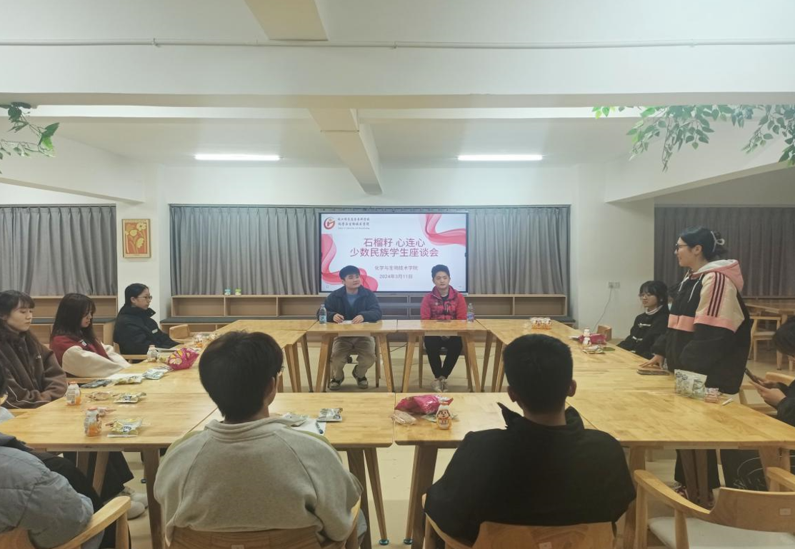 化学与生物技术学院召开“石榴籽心连心”少数民族学生座谈会。座谈会上,与会少数民族学生对各民族的文化特色、家乡风土人情、饮食习惯、生活习惯、兴趣爱好等方面逐一进行了介绍,分享了入学以来的所学所获、所思所想,提出了当前遇到的困惑。