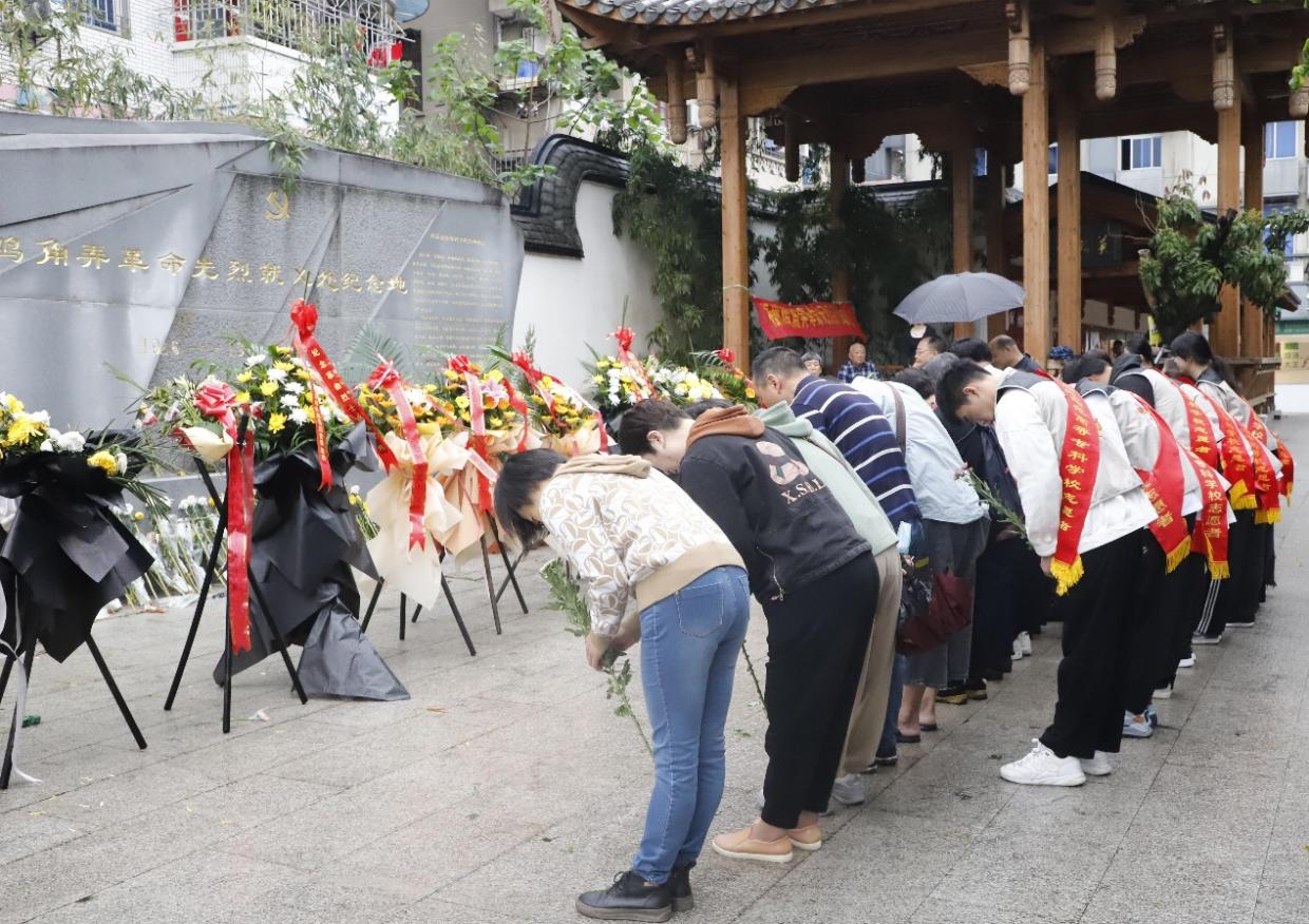 祭奠活动中,在翁良毓烈士的侄儿翁纪湘先生和烈士方尔灏的侄子方正先生的带领下,同学们与烈士后人一同向烈士们敬献鲜花,默哀鞠躬致敬,表达对革命先烈无尽的哀思和深切的怀念。同学们先后参观了鸡角弄革命烈士纪念长廊和鸡角弄革命烈士牺牲地旧址。同学们怀着敬仰之心,边参观边聆听边思考,深刻感受到了大赢家体育app下载杰出校友翁良毓、何文成、陈炳奎等革命先烈们艰苦卓绝的奋斗精神和英勇斗争、不怕牺牲的英雄气概,被他们舍生取义的爱国主义精神深深感动。