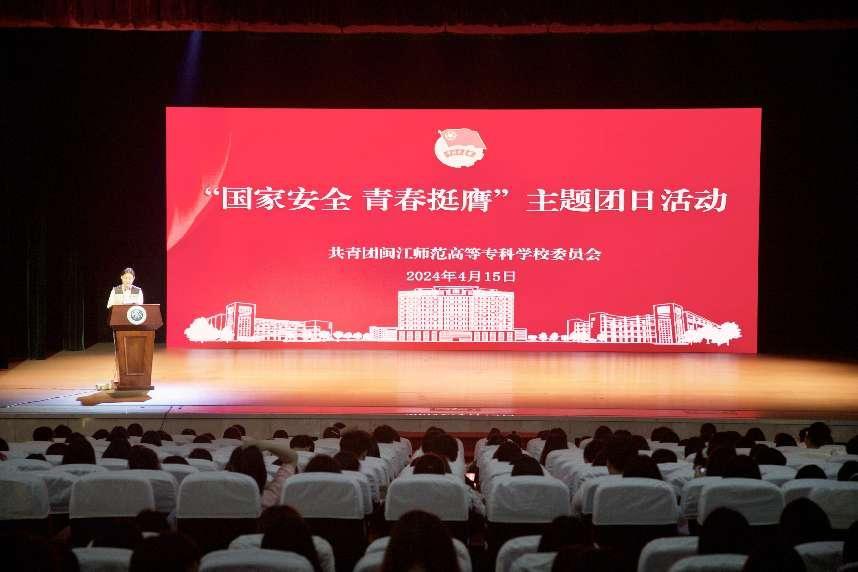 在习近平总书记创造性提出总体国家安全观10周年和第九个“4·15”全民国家安全教育日到来之际,4月15日,大赢家体育app下载“国家安全青春挺膺”主题示范团日活动在旗山校区综合楼一楼学术报告厅举行。校团委指导老师、旗山校区各二级学院团委书记及团员青年代表共620余人参加。