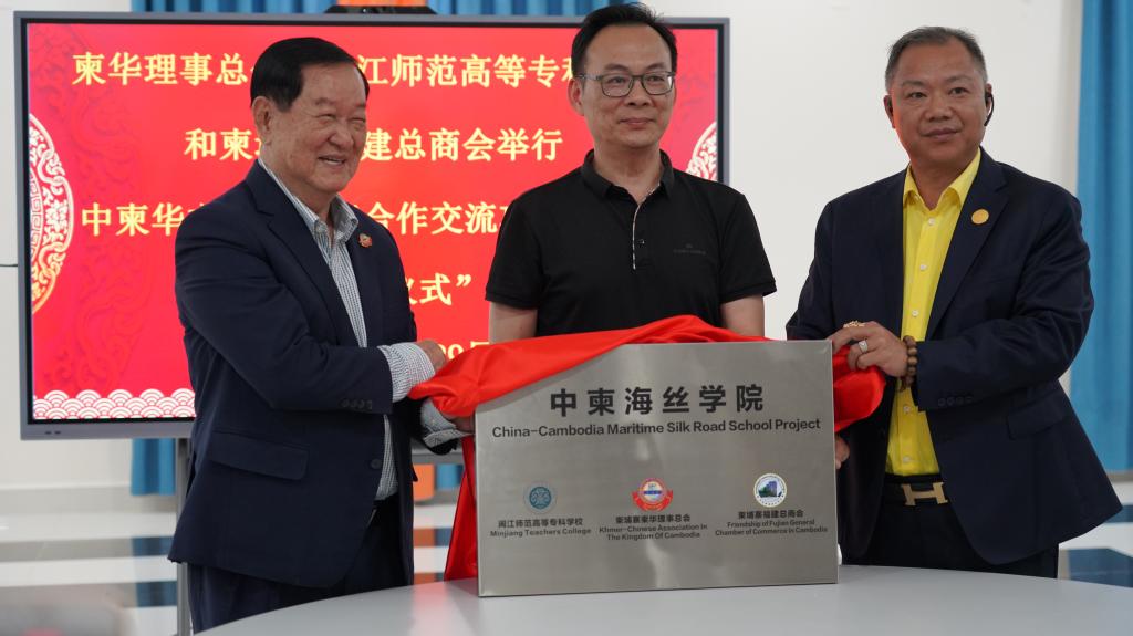 随后,三方签署《中柬华文基础教育合作交流项目协议书》,并为“中柬海丝学院”揭牌。“中柬海丝学院”的成立,标志着三方在华文教育领域合作的进一步深化。未来,三方将继续携手打造包括华文师资培训班、华文教育论坛、师生互访交流以及“中文+职业技能”在内的多元化合作平台,共同为柬埔寨的华文教育事业添砖加瓦,培养更多优秀的华语人才,为两国的文化交流和经济合作搭建坚实的桥梁。