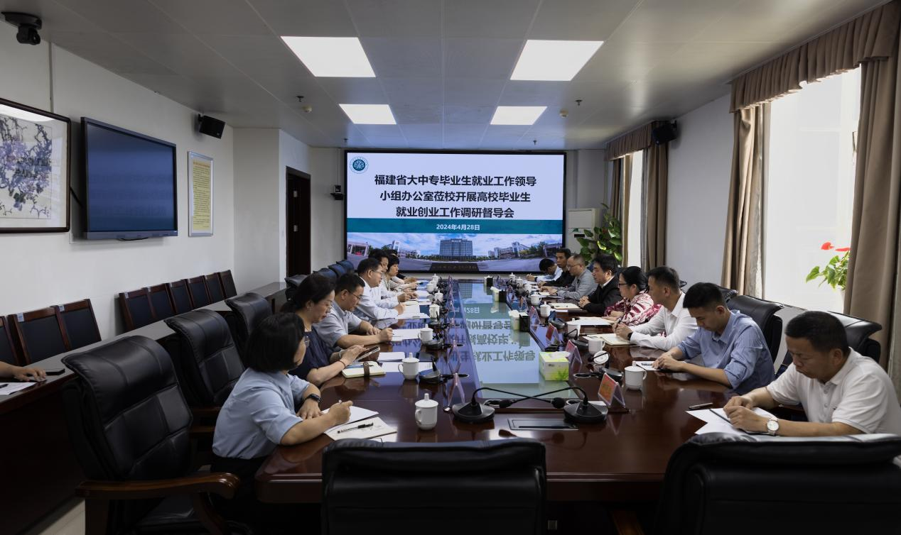 4月28日,福建省人力资源和社会保障厅党组书记、厅长孔繁军一行莅临学校开展2024年高校毕业生就业创业工作调研督导。学校党委书记林子波、校长杨建义、副校长谢敏峰及相关部门负责人参加调研督导汇报会。