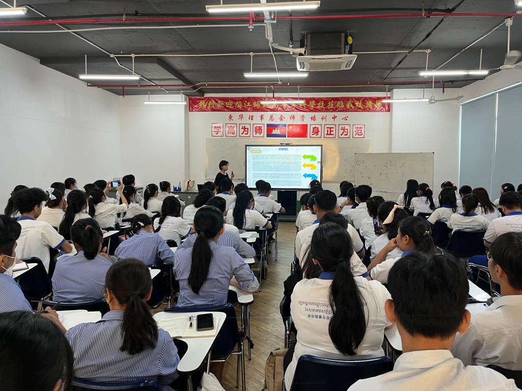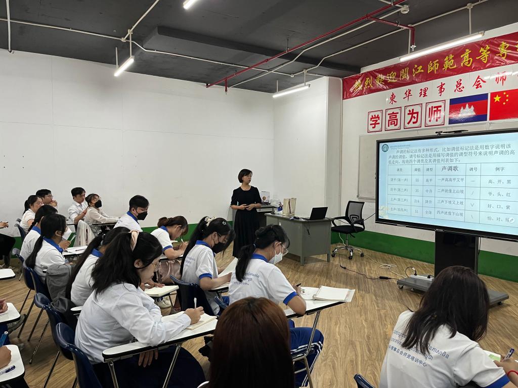 在为期4天的培训活动中,朱海莺重点围绕语音、汉字、词汇、听说、阅读、写作等多个方面,并结合柬埔寨华文教材,进行教学法分享以及示范课教学,旨在通过传授先进的教学途径和方法,进一步提升柬埔寨华文教师的课堂教学能力。