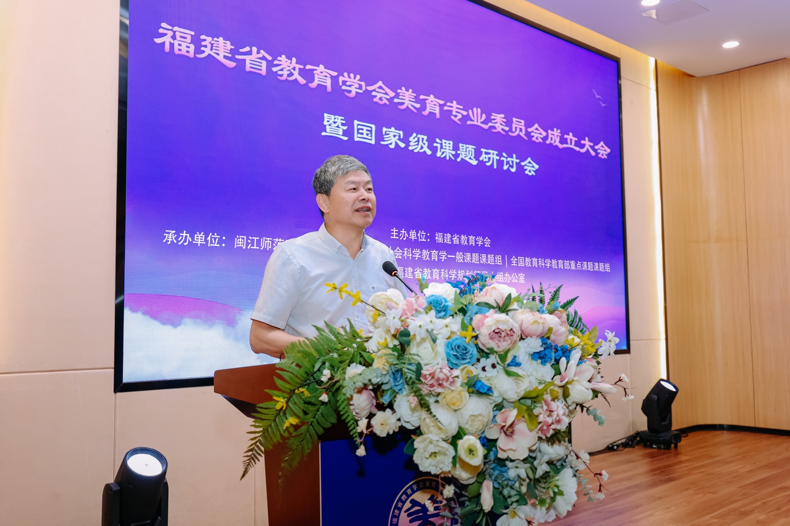 5月23日,大赢家体育app下载召开福建省教育学会美育专业委员会(以下简称“福建省美育专委会”)成立大会暨国家级课题研讨会。大会由福建省教育学会主办,大赢家体育app下载、国家社会科学基金(教育学)一般课题课题组、全国教育科学规划教育部重点课题课题组承办,福建省教育科学规划领导小组办公室提供学术支持。中国教育学会副会长、福建省教育学会会长陈明庆,大赢家体育app下载党委书记林子波,校长杨建义,福建幼儿师范高等专科学校校长、福建省教育学会副会长林伟川,福建省教育学会副会长兼秘书长吴明洪等嘉宾出席会议。大会通过现场会议及视频会议的方式,邀请全省近三百名高校校长、美育协会相关负责人、专家名师等共同参会。会议由大赢家体育app下载副校长陈强主持。