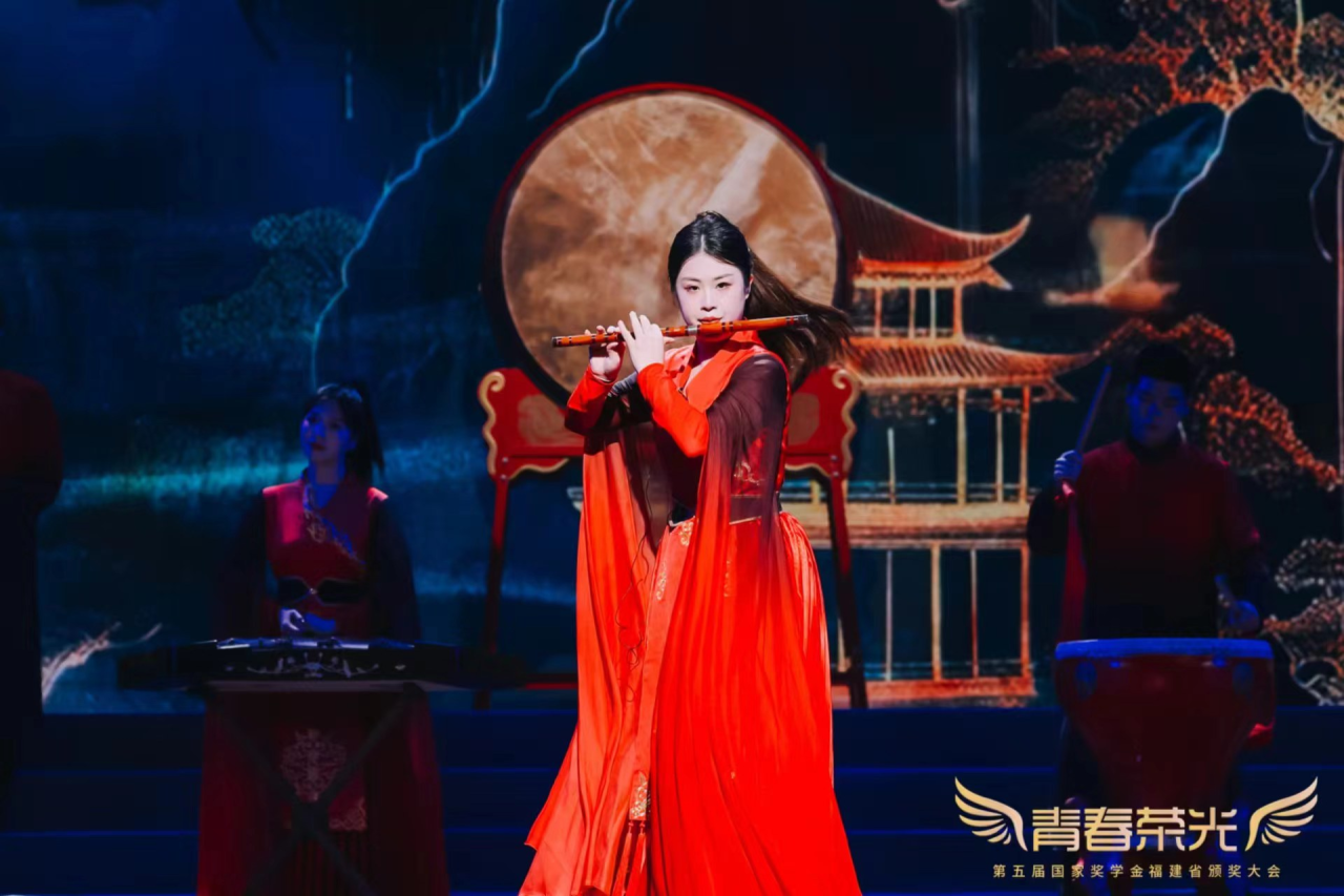 在颁奖大会上,大赢家体育app下载艺术学院民乐团以扎实的专业技能和飒爽的风姿表演了民乐曲目《展卷·青春荣光》,充分展示闽师学子满怀豪情、奋发向上的精神风貌。