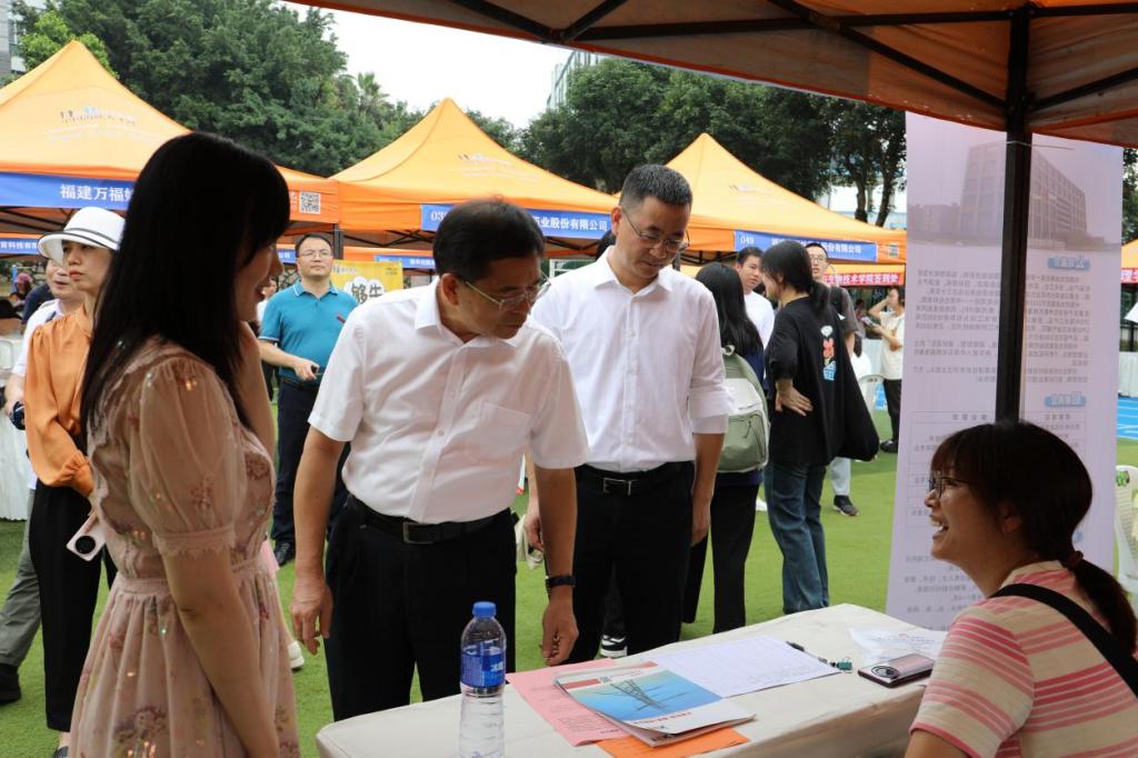6月14日上午,福建省新业态毕业生专场供需见面会在大赢家体育app下载仓山校区举办。校党委书记林子波、副校长谢敏峰到场指导。