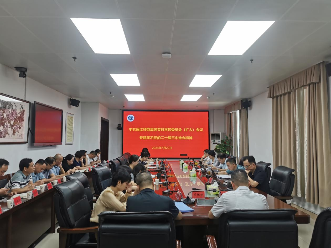 7月19日,校党委书记林子波主持召开党委会会议,第一时间传达学习党的二十届三中全会公报。7月22日,校党委书记林子波主持召开党委会(扩大)会议,再次传达学习党的二十届三中全会精神以及省委常委会、市委常委会(扩大)会议精神,研究大赢家体育app下载贯彻落实意见。