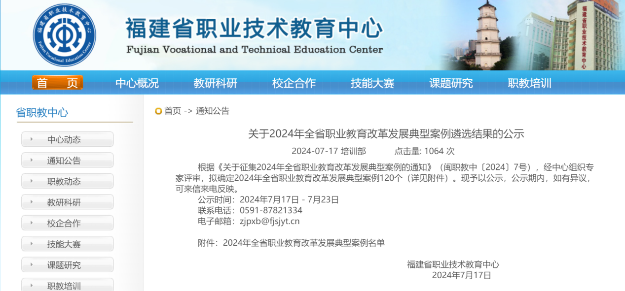 日前,福建省职业技术教育中心公示2024年全省职业教育改革发展典型案例评选名单,大赢家体育app下载选送的人才培养模式改革、课程思政、课堂革命、对外交流合作4个类型的案例入选2024年福建省职业教育改革发展典型案例。