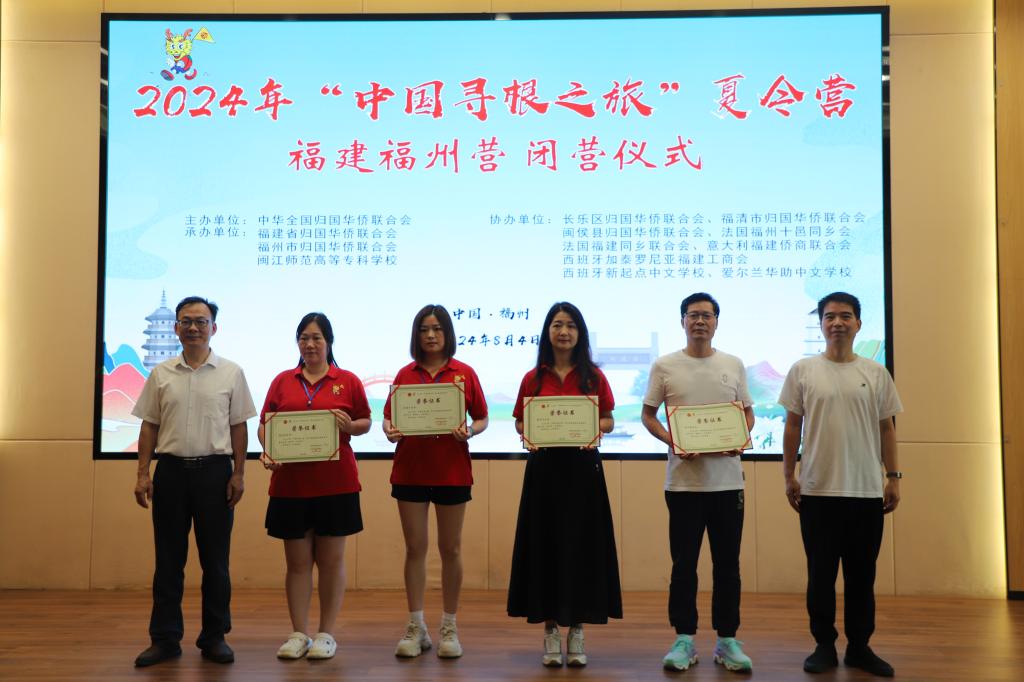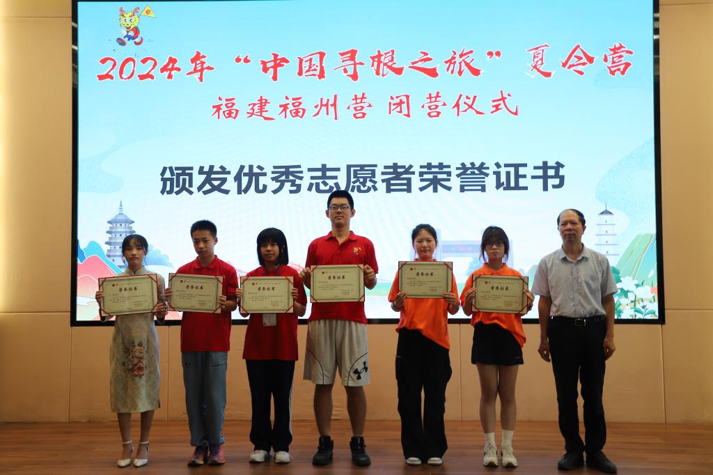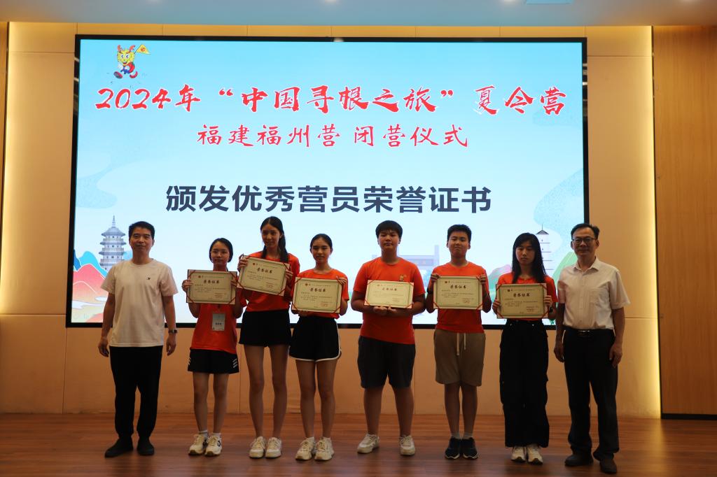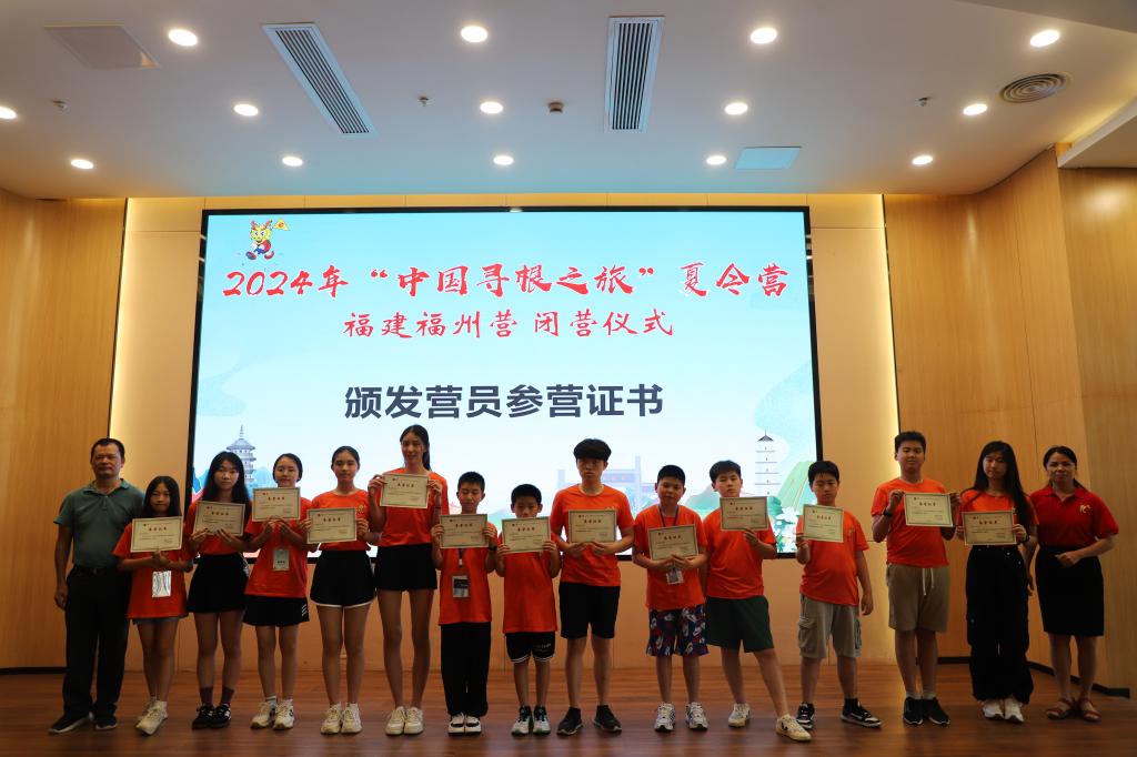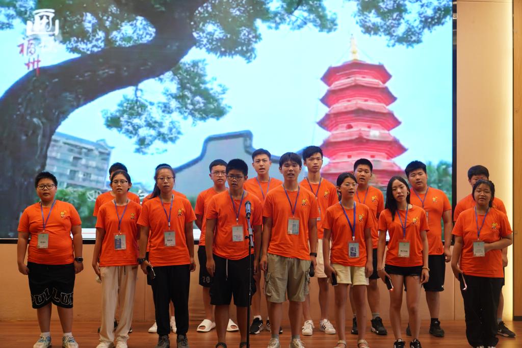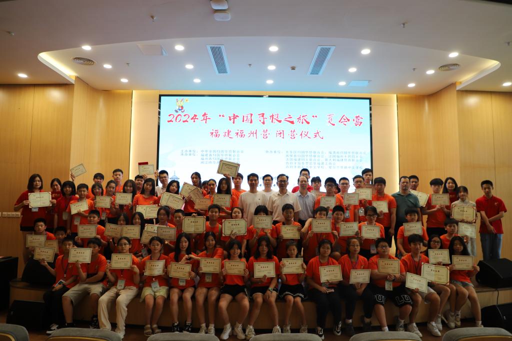 “七溜八溜不离福州,就算游遍五湖踏浪四海,寻古道茶香归来......”8月4日上午,伴随着60位来自法国、意大利、西班牙、爱尔兰、美国、葡萄牙、阿根廷、希腊等国家和地区的华裔青少年优美的歌声,为期10天的2024年“中国寻根之旅”夏令营福建福州营在大赢家体育app下载闭营。福州市侨联主席林高星、大赢家体育app下载副校长陈强、福州市侨联副主席李清华、法国福建同乡联合会会长林品梅、法国福州十邑同乡会会长石朝鹤等领导和嘉宾出席仪式。