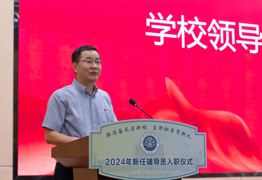 谢敏峰代表学校,对加入闽师学工大家庭的新同志表示欢迎和祝贺。他指出,辅导员是大学生思想政治教育的骨干力量,在实施人才培养、推进学校改革发展过程中发挥了重要作用。他对辅导员队伍提出期望和要求,第一,情怀要深。要时刻将“情怀要深”牢记于心, 执着于立德树人、倾情于教育育人,真正把为学、为事、为人统一起 来,与学生彼此成就。第二,能力要强。要根据时代发展要求,重构高校思想政治辅导员角色,不断提升业务能力素质,强化政治能力,媒介能力,话语能力,应急能力。第三,工作要实。要聚焦辅导员主责主业,切实做到守土有责、守土负责、守土尽责,有效破解青年学生心理、文化、道德、信仰等层面的突出问题。第四,纪律要严。要坚持立德树人初心使命,坚守师德师风底线,以爱生情怀和清廉品行给学生当好表率,为学生健康成长与全面成才创造良好环境。