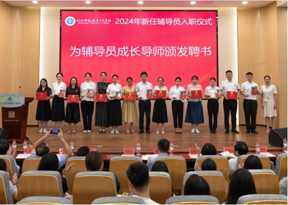 仪式上,人事处处长吴春艳为新任辅导员颁发入职纪念礼物及书籍。同时,为发挥优秀辅导员传、帮、带作用,促进新任辅导员快速成长,学校为每一位新任辅导员配备了成长导师,组织部部长马梅铃向辅导员成长导师颁发聘书。