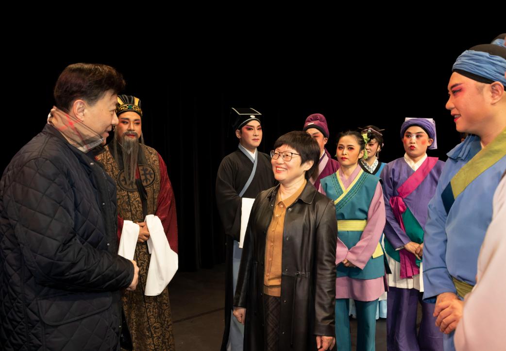 演出现场,演员们身着精致的戏服,凭借精湛的演技和生动的表情,将剧中人物的情感纠葛和感人故事演绎得淋漓尽致,现场掌声阵阵、赞誉连连。演员们扎实的表演功底让法国观众现场圈粉:有的拉着导演倾诉剧目结尾挥之不去的意难平;有的眼里噙着泪水上台与演员合影并激动地对演员说:“你们演得太好了,很荣幸能看到这场演出给我带来很不一样的感受,很期待再次看到你们的精彩表演”;有的冒着严寒在剧场门口静静等待演员们卸妆完之后留下微信等联系方式。幽默风趣的语言让人开怀大笑、乐不可支,“欲死还生,欲生还死”“欲认未认,未认欲认”的情感挣扎又让人为之动容、潸然泪下。这就是中华优秀传统戏曲艺术的独特魅力所在。