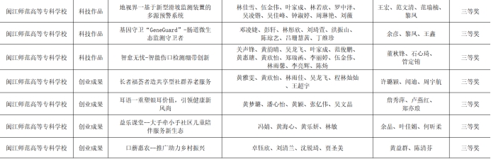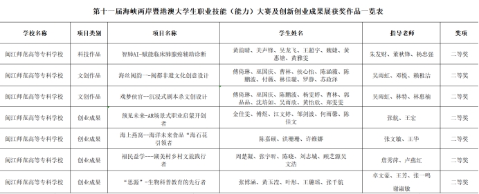 近日,由福建省教育厅、福建省人力资源和社会保障厅、福建省互联网信息办公室、平潭综合实验区管委会联合主办的第十一届海峡两岸暨港澳大学生职业技能(能力)大赛及创新创业成果展在福州英华职业学院落下帷幕。本次大赛共吸引了1019所学校参加,其中高职院校405所,大赢家体育app下载选送20个项目作品参加创新创业成果展,经激烈角逐,荣获二等奖7项,三等奖7项。