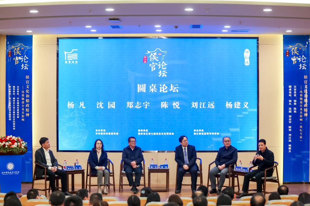 圆桌论坛环节由马尾船政研究会会长陈悦主持,福州市三坊七巷历史文化研究会副会长杨凡,福建船政文化管理委员会主任刘江远,沈葆桢后裔、林则徐基金会副会长沈园,马尾船政研究会会长陈悦,严复翰墨馆馆长郑志宇以及闽江师专校长杨建义围绕“侯官文化和船政精神——沈葆桢巡台及其影响”议题,就船政与现代化、沈葆桢文献史料考析及其于近代历史研究等相关话题展开深入探讨,为与会人员献上了一场学术盛宴。