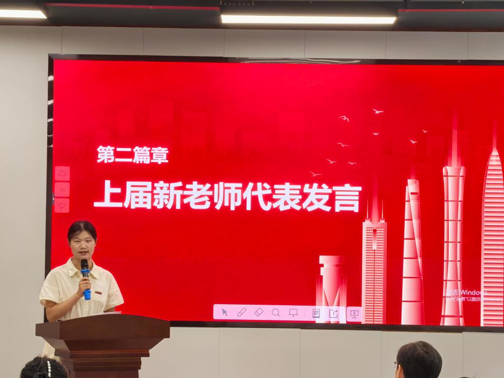 上届新教师代表周培就师徒结对一年以来的体会与成长进行了分享,并对导师的悉心指导表示衷心的感激。新教师们将感激之情以书面形式记录于贺卡,以此向导师致以诚挚的感谢。