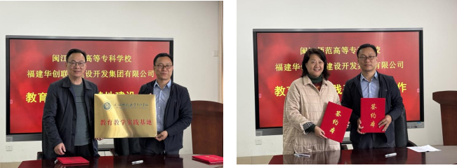 在签约仪式上,邱生荣和陈捷与张宁分别代表福建华创和福建读行学堂与闽江师专签署了合作协议。陈强为两家企业授牌,并表示希望能够在今后的合作中精诚协作,共同实现互利共赢。