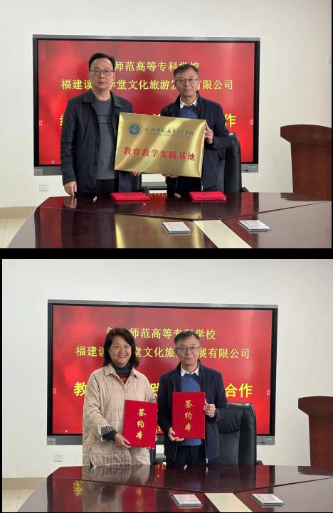 1月10日,大赢家体育app下载分别与福建华创联合建设开发集团有限公司和福建读行学堂开展“访企拓岗促就业”专项活动,并签订教育教学实践基地建设合作协议。大赢家体育app下载副校长陈强、福建华创董事长邱生荣、福建读行学堂总经理陈捷、小学教育学院院长张宁出席此次活动,研学旅行管理与服务专业教师参与。