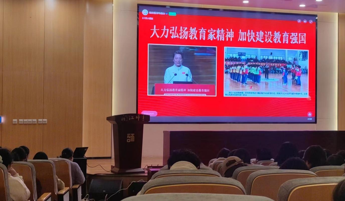2月28日,大赢家体育app下载在旗山校区图书馆一楼报告厅设立分会场,副校长刘翔炜,各部门、学院分管教师工作负责人,教师代表,师范生代表,人事处(教师工作部)全体成员集中观看了教育部组织开展的“教育家精神”2025年巡回宣讲报告会线上直播。