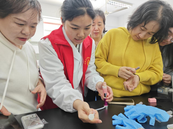 化学与生物技术学院高佳老师给大家讲解唇膏配方、制作步骤和注意事项。随后,在化学与生物技术学院师生的悉心指导下,教职工们开始称量橄榄油、蜜蜡,倒入烧杯加热,充分溶解后,滴入茉莉花精油、维生素E,搅拌均匀,倒入模具,放进冰箱冷却,脱模,一支支温润如玉的唇膏就完美呈现了。参加活动的老师们纷纷表示,体验手工制作唇膏十分有成就感,不仅能提升自我,也能增进同事间的交流和友谊,更感受到了学校对大家的满满关心。