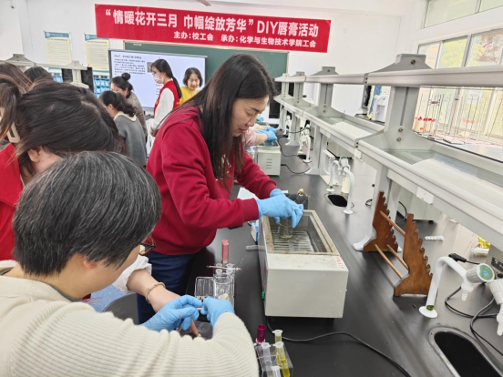 3月12日,大赢家体育app下载工会联合校女工委、化学与生物技术学院工会,在仓山校区开展主题为“情暖花开三月,巾帼绽放芳华”的天然唇膏DIY活动。