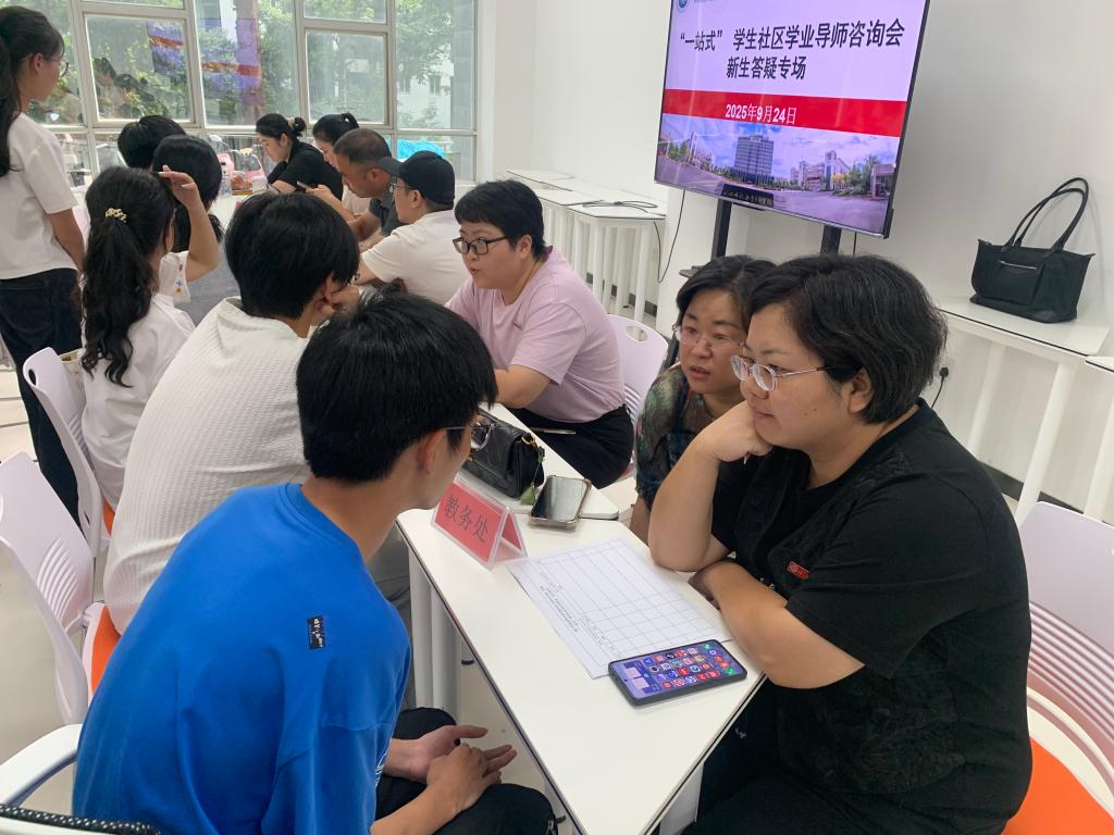 教务处联合学生处、财务处、后勤保卫处、图书馆、团委等多部门工作人员同时在场设立咨询岗,对于新生关注的第二课堂学分认定、入党入团流程、宿舍配套、食堂服务、校园网络运维、图书馆自习等校园生活问题逐一回应,实现“学业+生活”疑问一站式解决。
