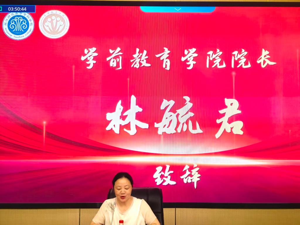 学前教育学院院长林毓君在仪式上致辞。她指出,校企联合工作室的成立,是响应国家“托幼一体化”服务政策导向、尝试破解托幼人才供需适配难题的重要举措。工作室将通过高校教学与行业实践深度融合,共同研究、共同实践、共同成长,为托幼领域培养适应区域经济发展的“懂理论、善实践、能创新”的优秀人才。