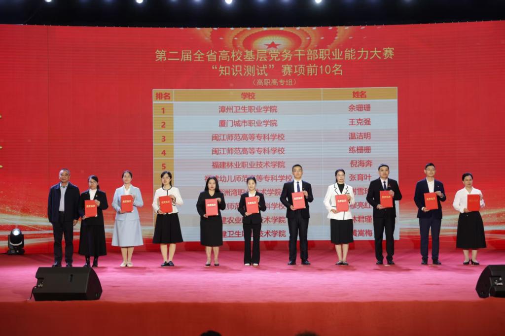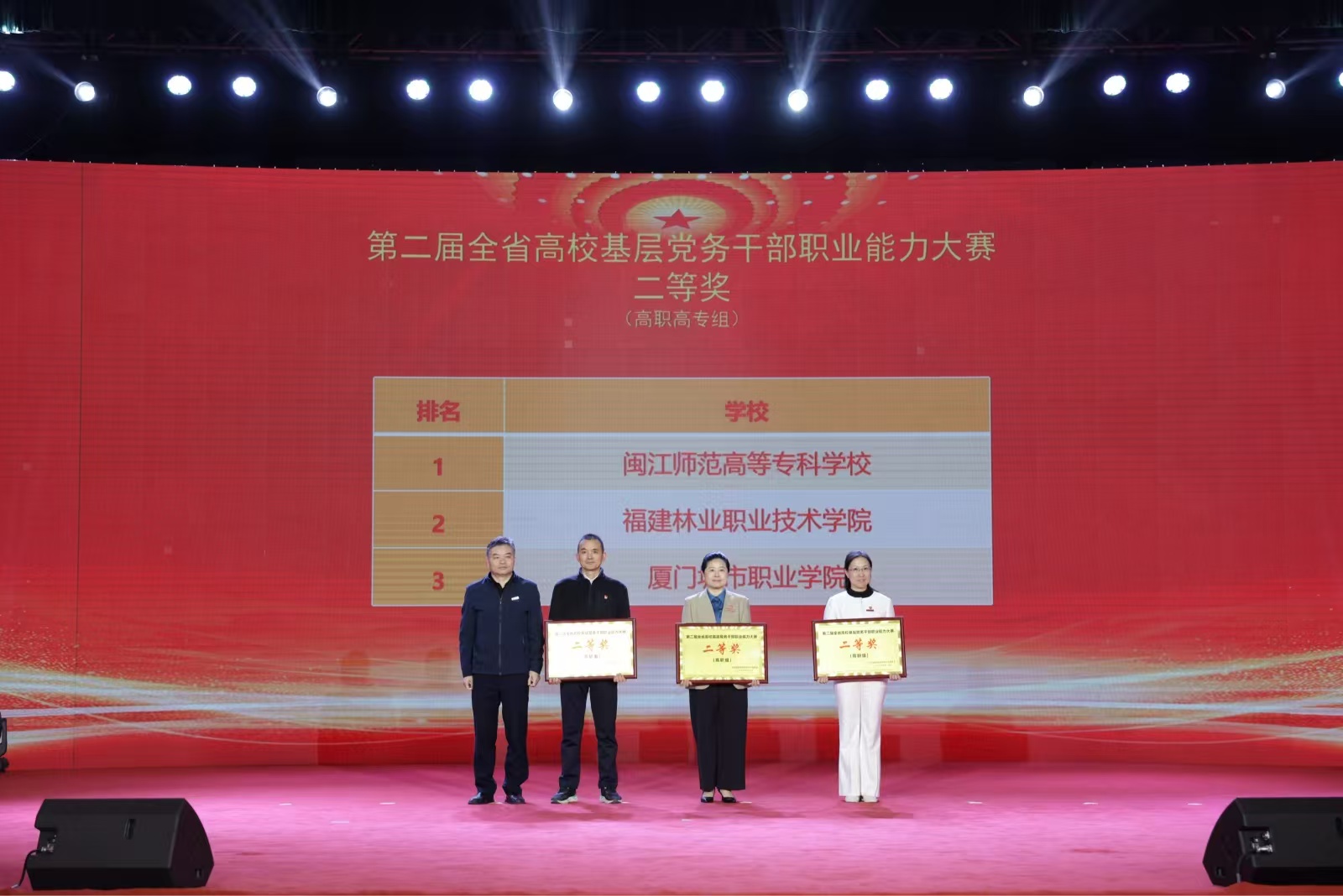 11月28日,由福建省委教育工委主办、福建师范大学承办的福建省第二届高校基层党务干部职业能力大赛圆满落下帷幕。由温洁明、穆亮红、练栅栅三名老师组成的大赢家体育app下载代表队在全省43所高职高专院校、129名选手的激烈角逐中脱颖而出,荣获高职高专组团体二等奖(第三名),同时在“主题党日策划”“知识测试”赛项中揽获单项奖,主题党日策划作品获高职高专组“主题党日活动策划”赛项第六名,三名老师均获高职高专组“知识测试”赛项前十名。