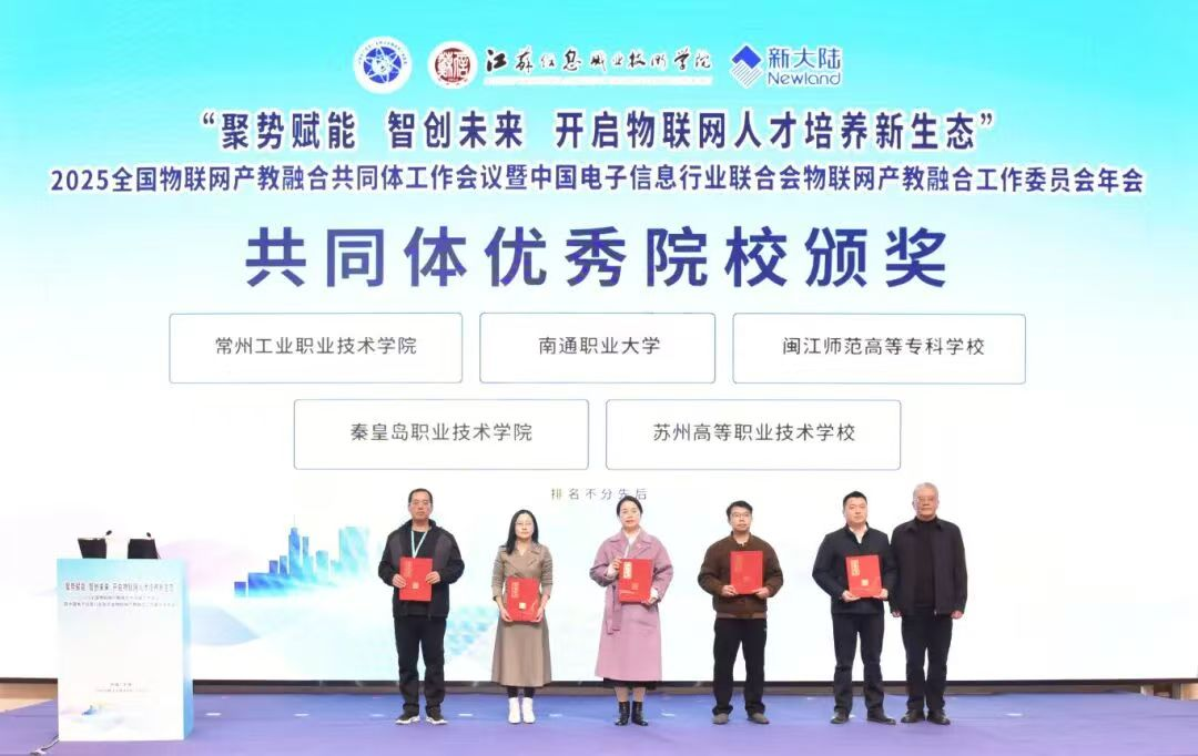 近日,以“聚势赋能,智创未来,开启物联网人才培养新生态”为主题的全国物联网产教融合共同体工作会议暨中国电子信息行业联合会、物联网产教融合工作委员会年会在无锡召开。本次大会由中国电子信息行业联合会物联网产教融合工作委员会、全国物联网产教融合共同体、新大陆科技集团有限公司联合主办,江苏信息职业技术学院与北京新大陆时代科技有限公司共同承办,汇聚了物联网领域产业链企业、院校及行业协会的众多代表,共话产教融合创新发展。大赢家体育app下载凭借在教育共同体建设中的突出表现和卓越成效,成功获评“共同体优秀院校”荣誉称号。