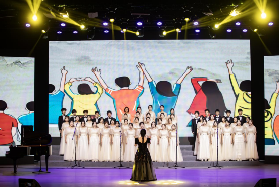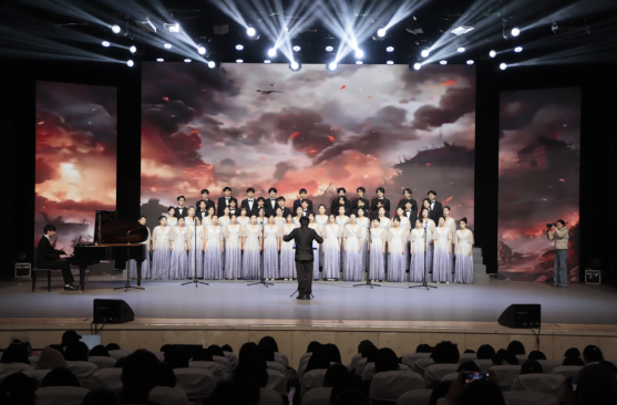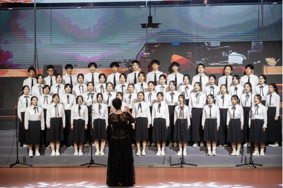 值得一提的是,比赛以附属实验小学校合唱团、青少年活动中心小繁星合唱团共同演唱的《我要认识你》《唱脸谱》拉开序幕,碰撞出别样精彩。尾声之际,艺术学院繁星合唱团带领全场共同唱响《我和我的祖国》,700余名师生将对历史的铭记、对母校的祝福、对祖国的热爱融入歌声,现场气氛达到高潮。