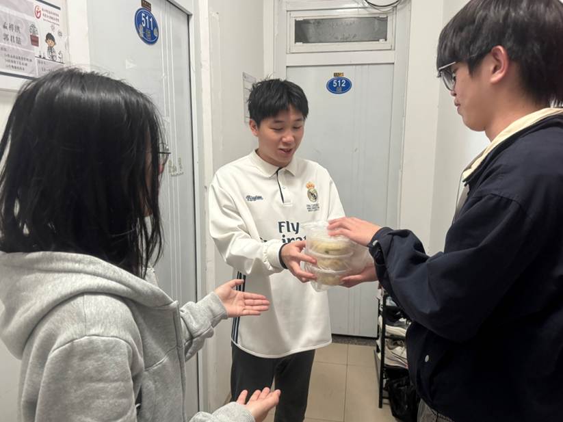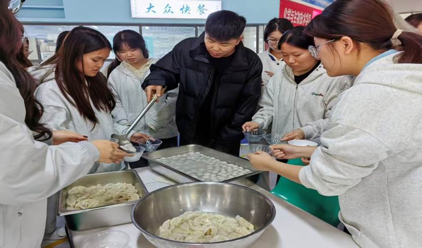 活动中,师生共同动手,捏皮、放馅、捏合,薄面皮化作形状各异的饺子和汤圆摆满托盘。每枚饺子和汤圆都承载心意与创意,同学们在实践中体悟劳动的意义、合作的快乐与分享的温暖。饺子、汤圆煮好后,同学们有序品尝劳动成果,脸上洋溢着满足的喜悦。学生干部还化身“温暖传递者”,将热气腾腾的餐食送至宿舍楼,暖胃更暖心。