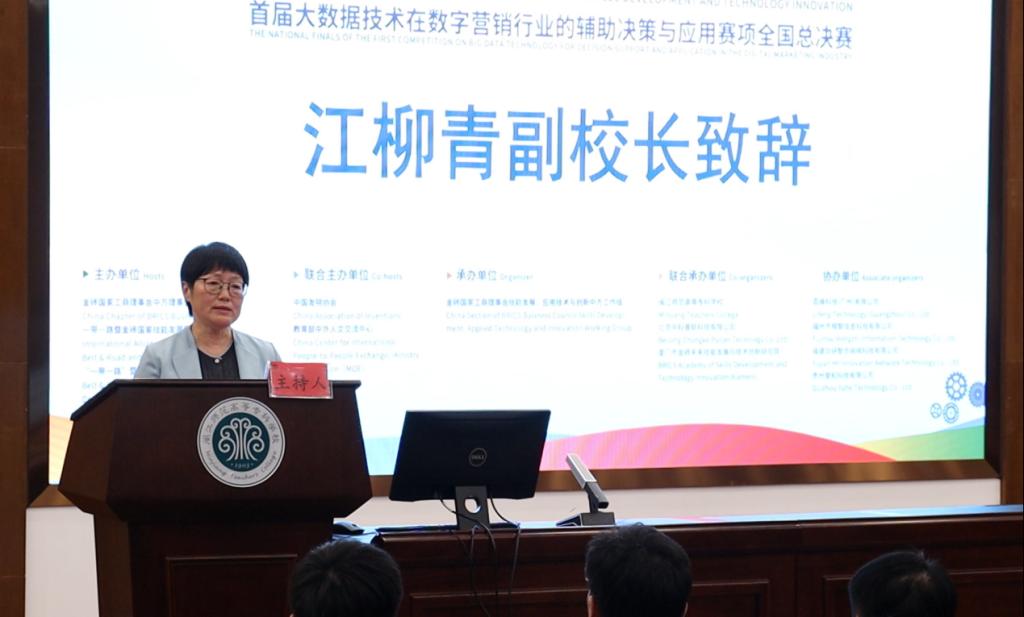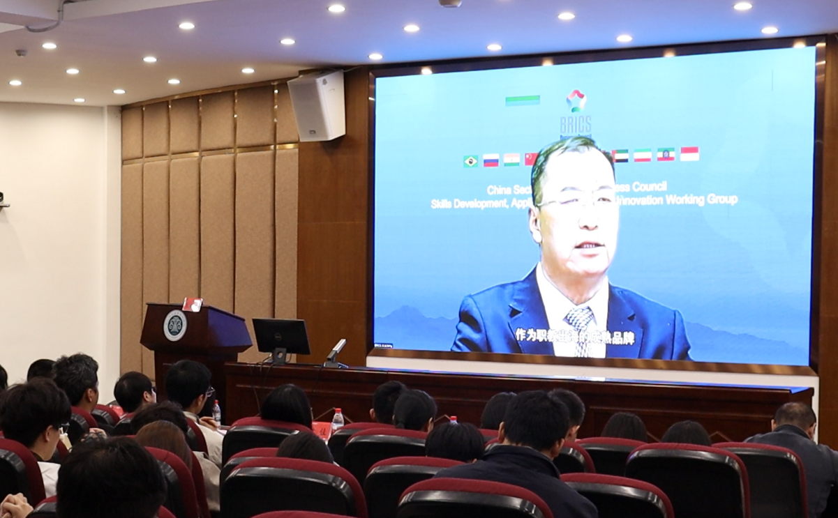 金砖国家工商理事会中方技能组组长、一带一路暨金砖国家技能发展国际联盟理事长、金砖国家技能发展与技术创新大赛组委会执委会主席刘振英博士通过视频致辞,阐述了大赛的国际影响力,强调大数据与数字营销的融合对产业升级及金砖国家技能合作的重要意义,并希望以赛事为纽带深化产教融合与国际交流。