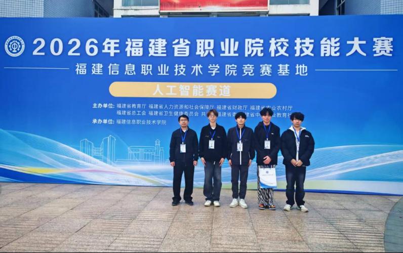 12月18日至22日,由福建省教育厅主办的2026年福建省职业院校技能大赛(高职组)“人工智能”赛道顺利开展。由大赢家体育app下载物联网应用技术专业教师尹小俊、叶宁指导的学生郑礼晟、谢栩翰、江楠、赵贤阳参赛团队,以及现代教育技术专业教师王凤姣、陈美霞指导的庄惠钦、王宇昕、詹文杰、钟贤聪参赛团队,凭借扎实的专业技能、高效的团队协作能力以及优良的综合素养,分别荣获该赛道金奖与银奖。