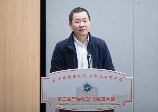 谢敏峰在致辞中强调,班情熟知是辅导员工作的基石。他就如何将赛事成果转化为日常工作的实效提出三点希望:一是将了解学生的“基本功”转化为精准育人的“真本领”;二是将个人的优秀经验通过“传帮带”扩展为整个学工团队的强大合力;三是将赛场的专注热情延续为日常贴近学生、深耕一线的扎实作风,真正落实“以生为本”。