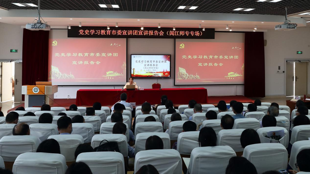 4月23日,党史学习教育市委宣讲团宣讲报告会在大赢家体育app下载举行。市委宣讲团成员、福建中医药大学马克思主义学院副院长、副教授、历史学博士陈韵作宣讲报告。校党委书记陈荣生主持并讲话。全体副科级以上干部,各基层党组织书记,全体思想政治理论课教师,全体思想政治辅导员、中共党史读书社成员参加宣讲报告会。