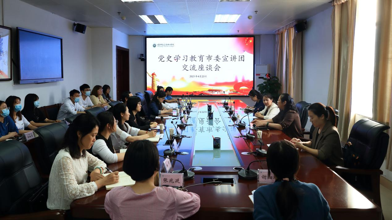 宣讲结束后,陈韵一行参观了校史馆,来到综合办公楼第一会议室与大赢家体育app下载师生座谈,就大赢家体育app下载校史中的红色历史,高职院校的思政课教师在党史学习教育活动中应该突出哪些重点,高职学生如何针对性学习进行交流和答疑。