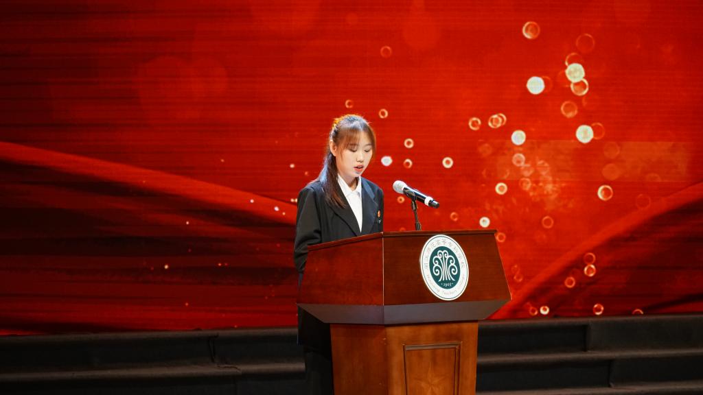 2019级国际贸易专业、团委兼职副书记苏成萍作为获奖同学上台发言,她始终相信“奋斗的青春最美丽”,表示要争当时代先锋,做好每一件小事,完成每一项任务,履行每一项职责,学好科学文化知识和专业技能,努力提高综合素养,在学习中增长知识,锤炼品格,在工作中增长才干,练就本领,在矢志奋斗中谱写新时代的青春之歌!