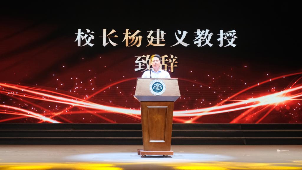 最后,杨建义发表讲话,向全校各级团学组织和广大青年致以节日的祝福,向受表彰的先进集体和个人表示祝贺,对校团委取得的一系列成绩予以肯定。同时,对校各级团组织和广大团员提出三点要求:一是要爱党爱国,学史知史,以坚定的理想信念和过硬的综合素质接过实现中华民族伟大复兴的接力棒;二是胸怀国家,勇于担当,养浩然气,广仁爱心,做向善、向上、向学、向知的有为青年;三是深化团组织改革,激发活力,将“青春梦”与“中国梦”紧密相连,实现自己的人生价值。