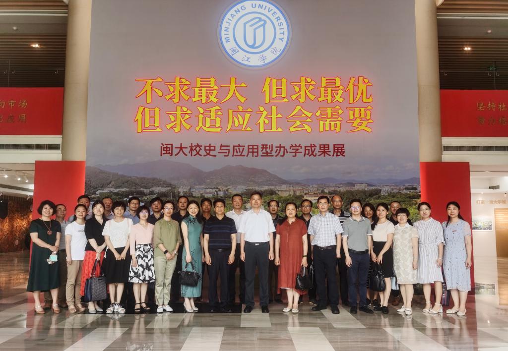 为深化党史学习教育,进一步推进广大党员领导干部深入学习和领会习近平总书记关于教育的重要论述。5月17日上午,校党委书记陈荣生、校长杨建义、副校长林旻率全校中层以上干部赴闽江学院参观学习闽大校史与应用型办学成果展。闽江学院副校长吴建铭等热情接待并陪同参观学习。