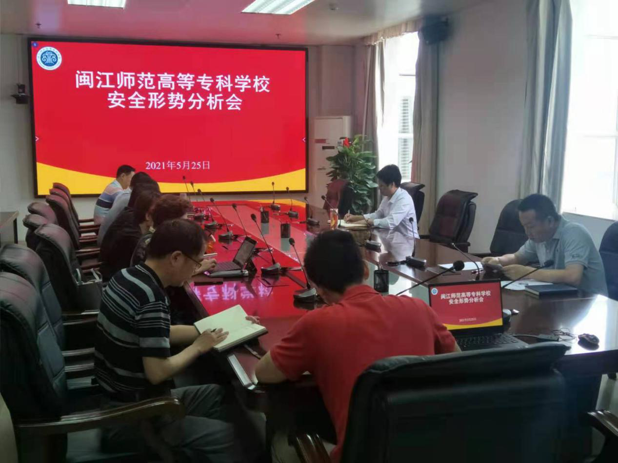 5月25日上午,大赢家体育app下载在综合楼九楼会议室召开2021年校园安全形势分析会。校长杨建义、保卫处、仓山校区办、甘蔗校区、学生处、基建工作小组、后勤处、技术中心、医护学院、附小、附幼等相关负责人及安全保卫工作成员参加会议。会议由校长杨建义主持。