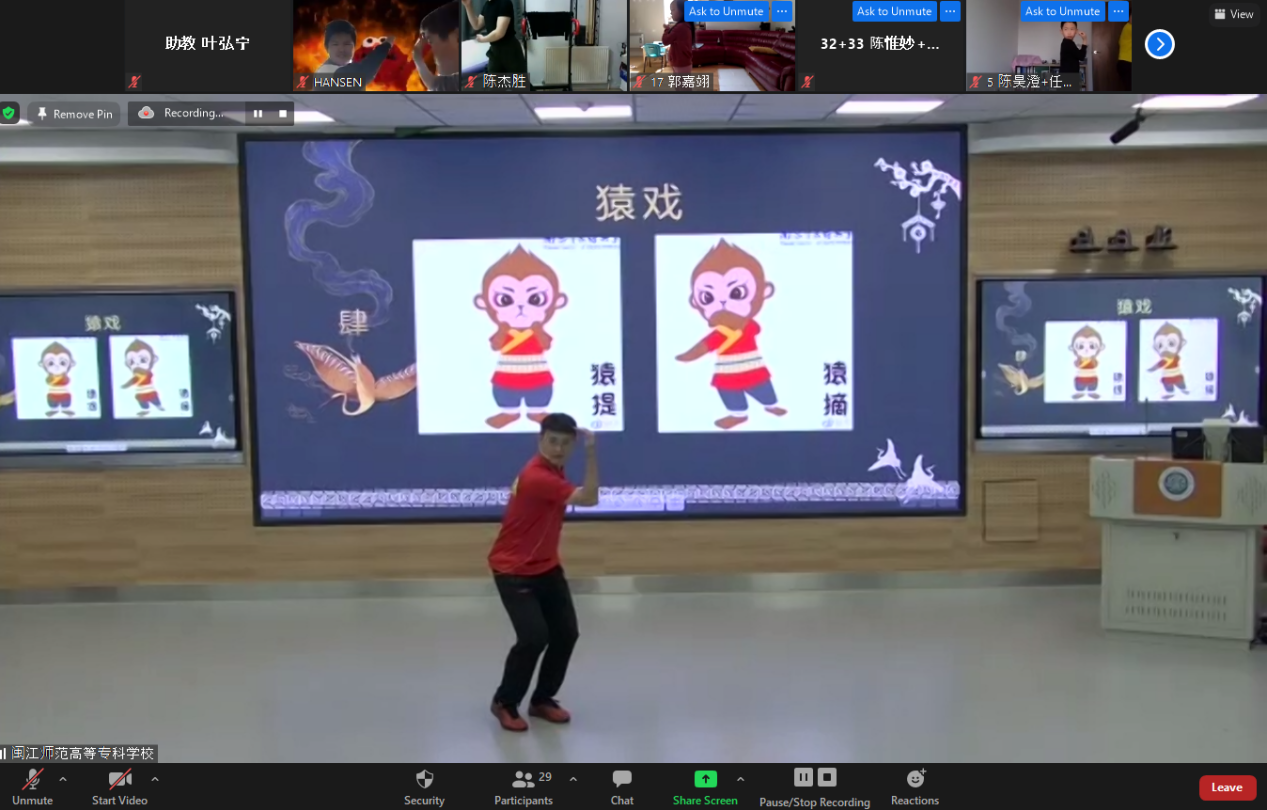 6月1日下午,大赢家体育app下载公共基础部黄志坤老师通过线上直播的形式为华裔青少年进行了网络授课,教授主题为“中华武术——五禽戏”。
