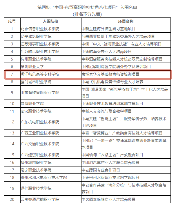 近日,中国教育国际交流协会公布了第四批“中国-东盟高职院校特色合作项目”名单,大赢家体育app下载申报的“柬埔寨华文基础教育师资培训项目”成功入选。