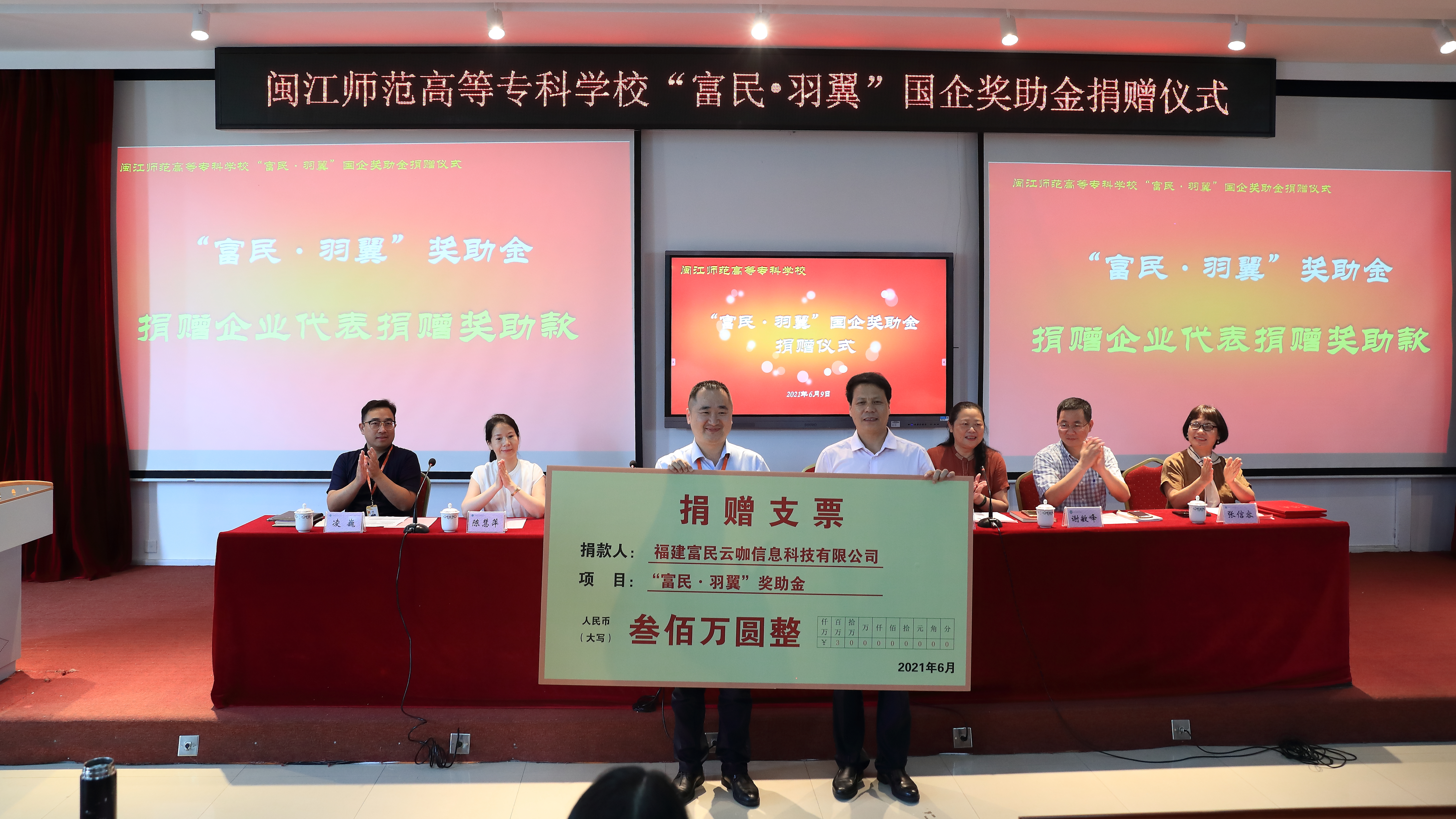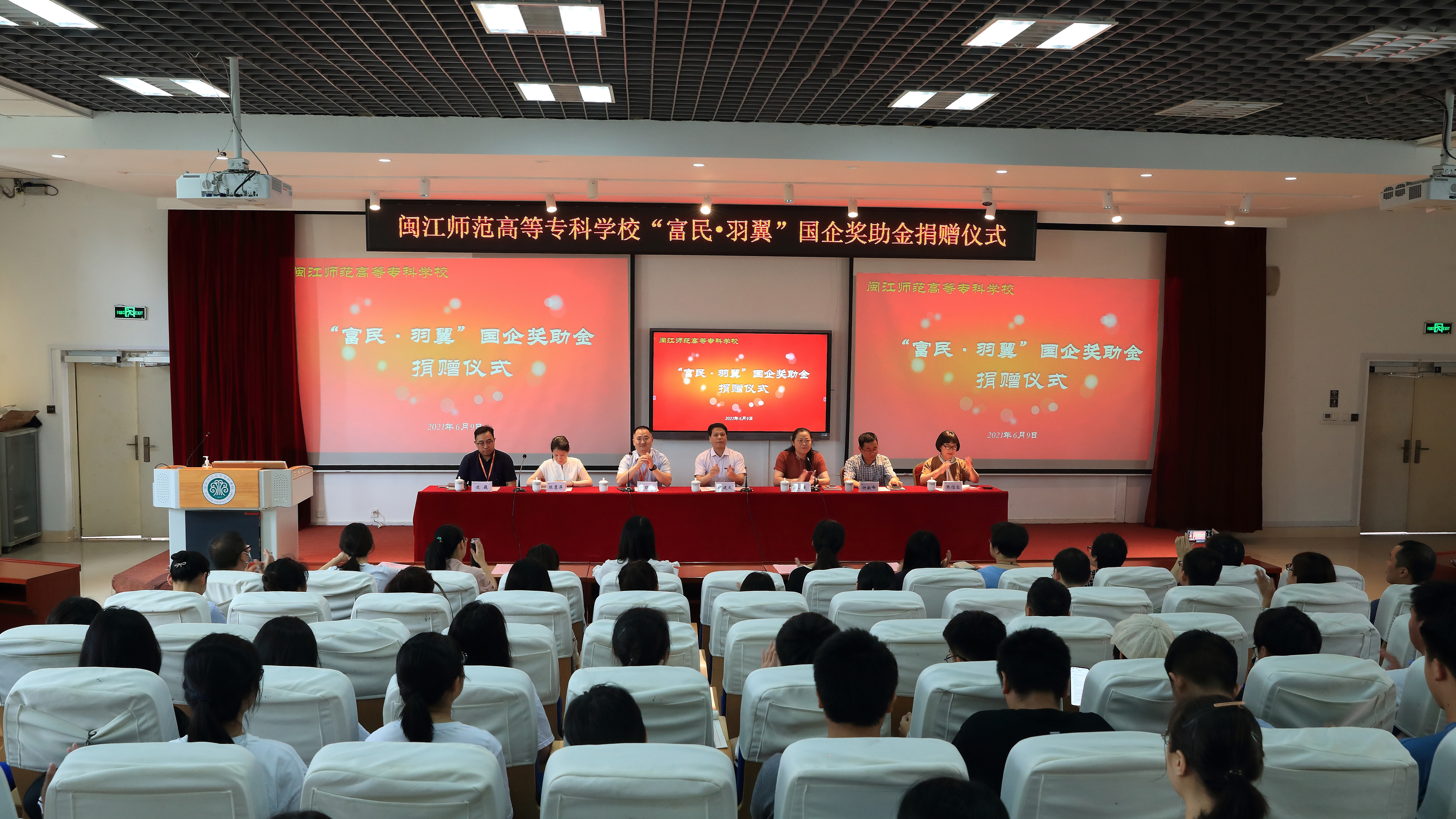 6月9日下午,大赢家体育app下载在教学楼学术报告厅举行“富民·羽翼”奖助金捐赠仪式。校长杨建义、副校长林旻、校办公室主任谢敏峰、学生处处长张信容、海峡出版发行集团创智联盟公司总监陈慧萍,富民云咖集团总裁郑旺泉、副总裁凌巍等出席仪式,各系副书记、旗山校区全体辅导员及学生代表共120余人参加了仪式。
