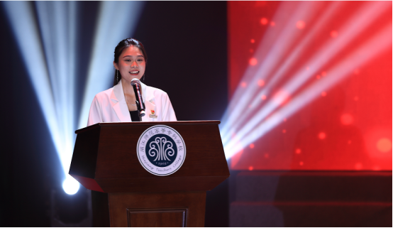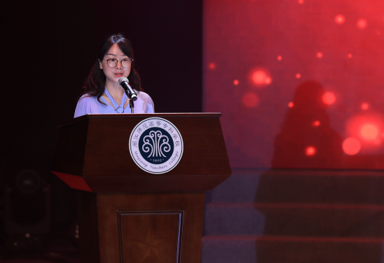 外语系何凌老师和化工系林媛老师作为教师代表回顾了三年来与同学们的共同经历,表达了对毕业生前程的美好期待,嘱托大家:铭记“养浩然气 广仁爱心”的校训精神,做一个完整、温暖、勇敢的人,在缤纷世界中,不忘初心,找到适合自己的“条件反应”,把人生价值写到祖国的大好河山上去!