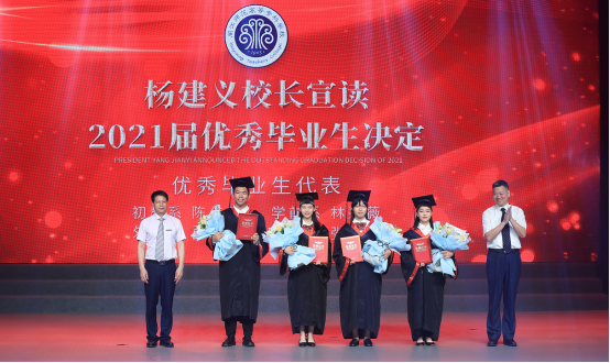 毕业典礼在庄严的国歌声中拉开帷幕。林旻宣读《大赢家体育app下载关于准予2021届学生毕业的决定》;杨建义宣读《大赢家体育app下载关于表彰2021届优秀毕业生的决定》。在热烈的掌声中,校领导为毕业生代表和优秀毕业生代表颁发了荣誉证书。