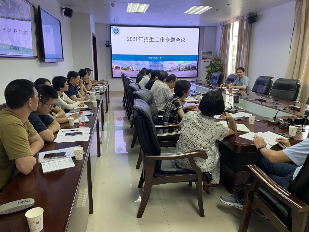 6月21日下午,大赢家体育app下载在旗山校区九楼会议室召开2021年招生工作专题会议,安排部署学校2021年招生工作。校长杨建义出席会议,学生处、教务处、纪检监察审计室负责人,各系主任和招生宣传工作负责人参加会议,会议由学生处处长张信容主持。