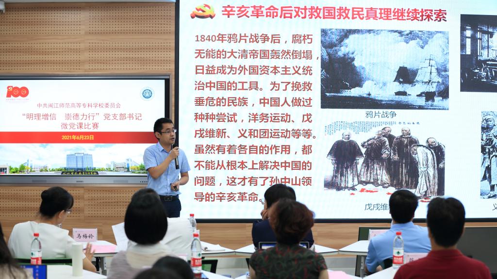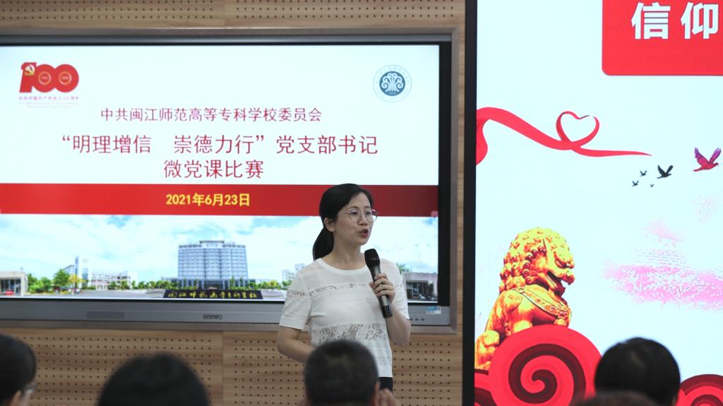 中国共产党因信仰而生,百年的中国共产党党史就是一部坚定的信仰史,中国共产党人因信仰而守初心、担使命,中国共产党人因信仰为民族谋振兴、为人民谋幸福,这信仰源于对国家的深厚挚爱,这信仰源于对党和人民的无限忠诚。学前教育系(福州幼教集团)学生党支部书记余彦讲授《从“校史的红色记忆”中谈党员的信仰》微党课。