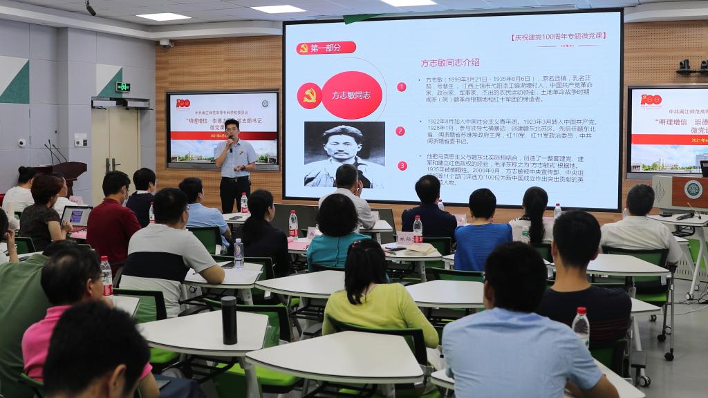 80多年前,中国工农红军创造了史无前例的长征奇迹,书写了举世无双的长征史诗,造就了英勇无畏、坚忍不拔的长征精神。苦难辉煌的长征历史,无与伦比的长征精神,也是福建苏区军民共同参与创造的最可宝贵的精神财富。计算机系教师党支部书记王华讲授《风展红旗如画——福建对长征的贡献》微党课。